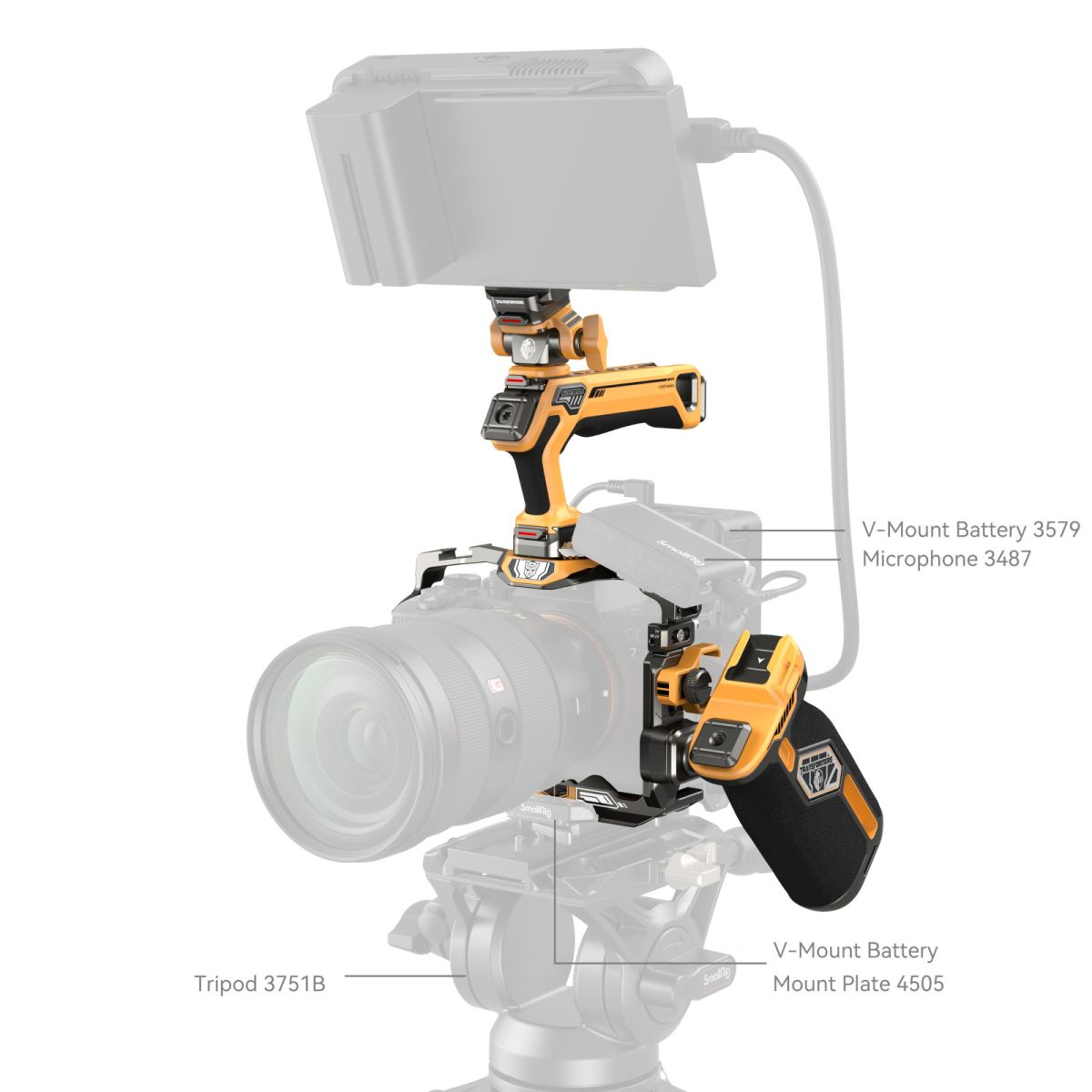 Dank zahlreicher Gewindebohrungen, ARRI-Aufnahmen, Cold Shoe und NATO-Schienen lassen sich Monitore, Mikrofone, Leuchten und weiteres Zubehör befestigen.