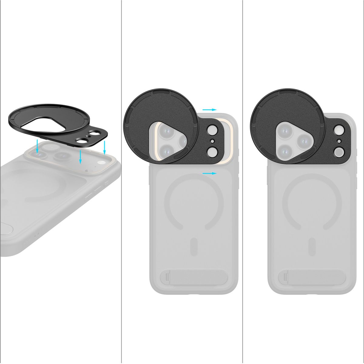 Die Montage erfolgt werkzeuglos durch Aufschieben auf kompatible SmallRig FilMov Phone Cases oder Mobile Video Cages für das iPhone 17 Pro Max.