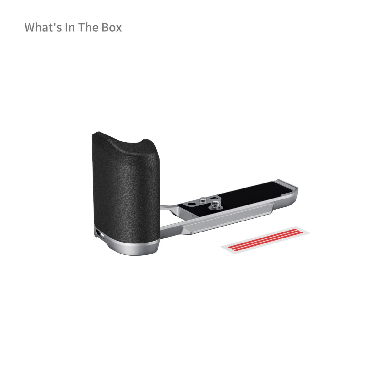 Die L-förmige Montageplatte mit integriertem Silikongriff wurde zur Verbesserung der Handhabung und Stabilität spiegelloser Kameras entwickelt. Sie bietet eine ergonomische Griffverlängerung, eine integrierte Arca-Swiss-Schnellwechselplatte sowie eine leichte, kompakte Bauweise für den mobilen Einsatz. Das Design ist exakt auf die Kamerageometrie abgestimmt und unterstützt den sicheren Einsatz auf Stativen.
