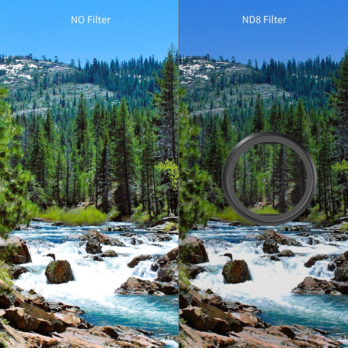Der ND8-Filter wird hauptsächlich bei hellem Tageslicht verwendet, um die Lichtmenge zu reduzieren und eine ausgewogene Belichtung zu erreichen.