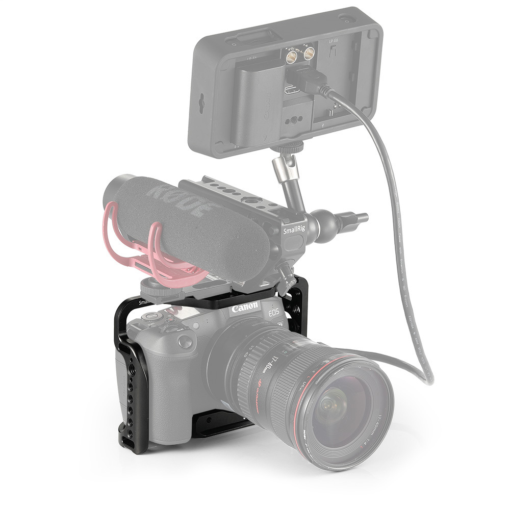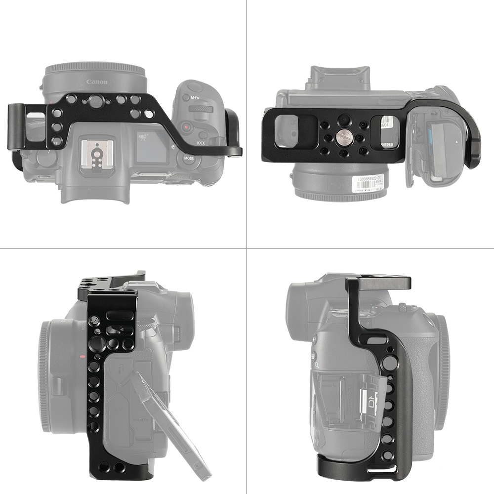 Dieser eigens für die Canon EOS R entworfene Kamera-Cage ist aus stabiler, leichtgewichtiger Aluminiumlegierung gefertigt und bietet durch diverse 1/4" und 3/8" - Gewindebohrungen vielseitige Möglichkeiten zum Anbringen von Zubehör.