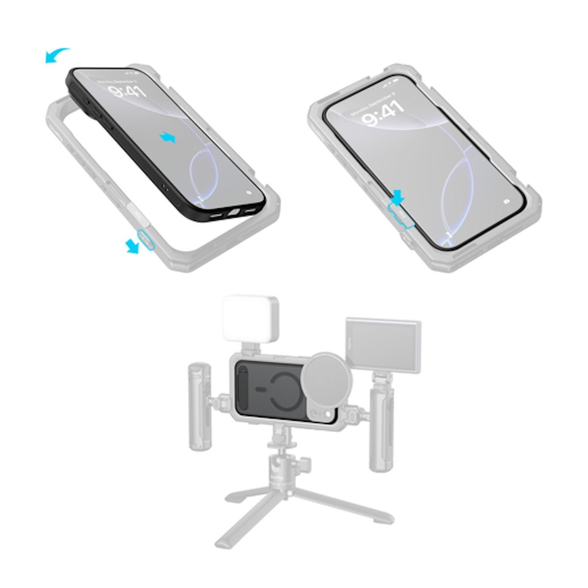 Die Hülle ist so konstruiert, dass sie ohne Demontage in kompatible SmallRig-Smartphone-Cages eingesetzt werden kann. Dadurch gelingt der schnelle Wechsel zwischen Alltagsnutzung und professionellen Video-Rigs, ohne Arbeitsabläufe zu unterbrechen oder Zubehör neu montieren zu müssen.