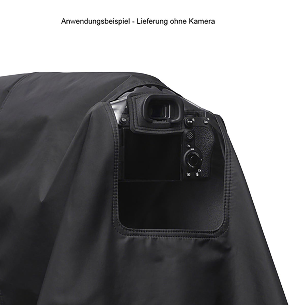 Diese wetterfeste Kamerahülle schützt Kamera und Objektiv zuverlässig vor Regen, Schnee und Wind. Das atmungsaktive Material verhindert die Bildung von Feuchtigkeit auch bei längeren Aufnahmen und ermöglicht eine flexible Nutzung bei unterschiedlichsten Wetterbedingungen. Ein transparentes Sichtfenster sowie eine ergonomische Sucheröffnung sorgen für eine präzise Kontrolle der Kamera, während das geringe Gewicht eine komfortable Handhabung gewährleistet.