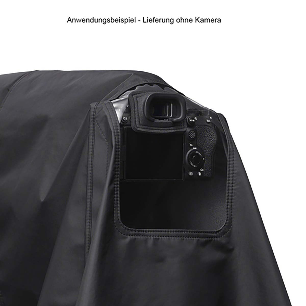 Das Schutzcover ist mit einem praktischen Klettverschluss ausgestattet, der das Anbringen und Entfernen erleichtert. Die flexible Sucheröffnung aus Gummimaterial sorgt dafür, dass sich die Hülle komfortabel an verschiedene Kameraformen anpassen lässt.