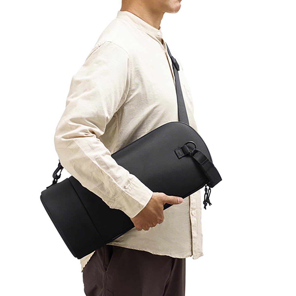 Das integrierte Tragesystem kombiniert Handgriffe und einen Schultergurt, um eine flexible Nutzung zu ermöglichen. Dadurch eignet sich die Tasche sowohl für kürzere Wege im Studio als auch für längere Transporte im Outdoor-Bereich.