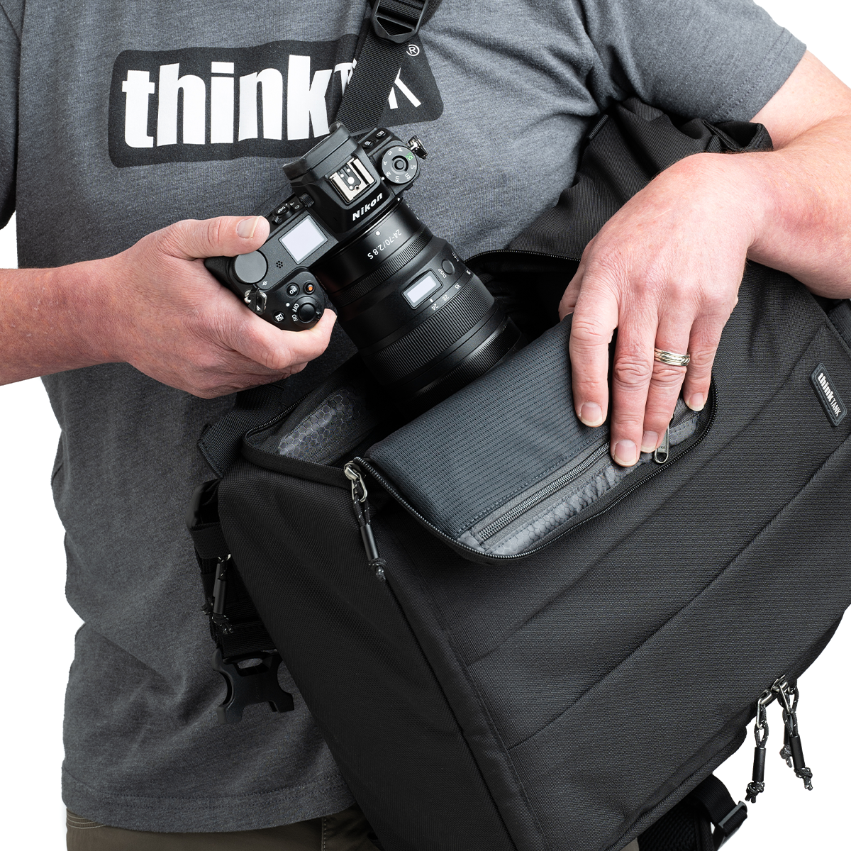 Mit dem gepolsterten, herausnehmbaren Fotoeinsatz verwandelt sich der ThinkTank Focus Point Rolltop 30L in einen universellen Tagesrucksack. So eignet er sich gleichermaßen für Fotoeinsätze wie für den Alltag.