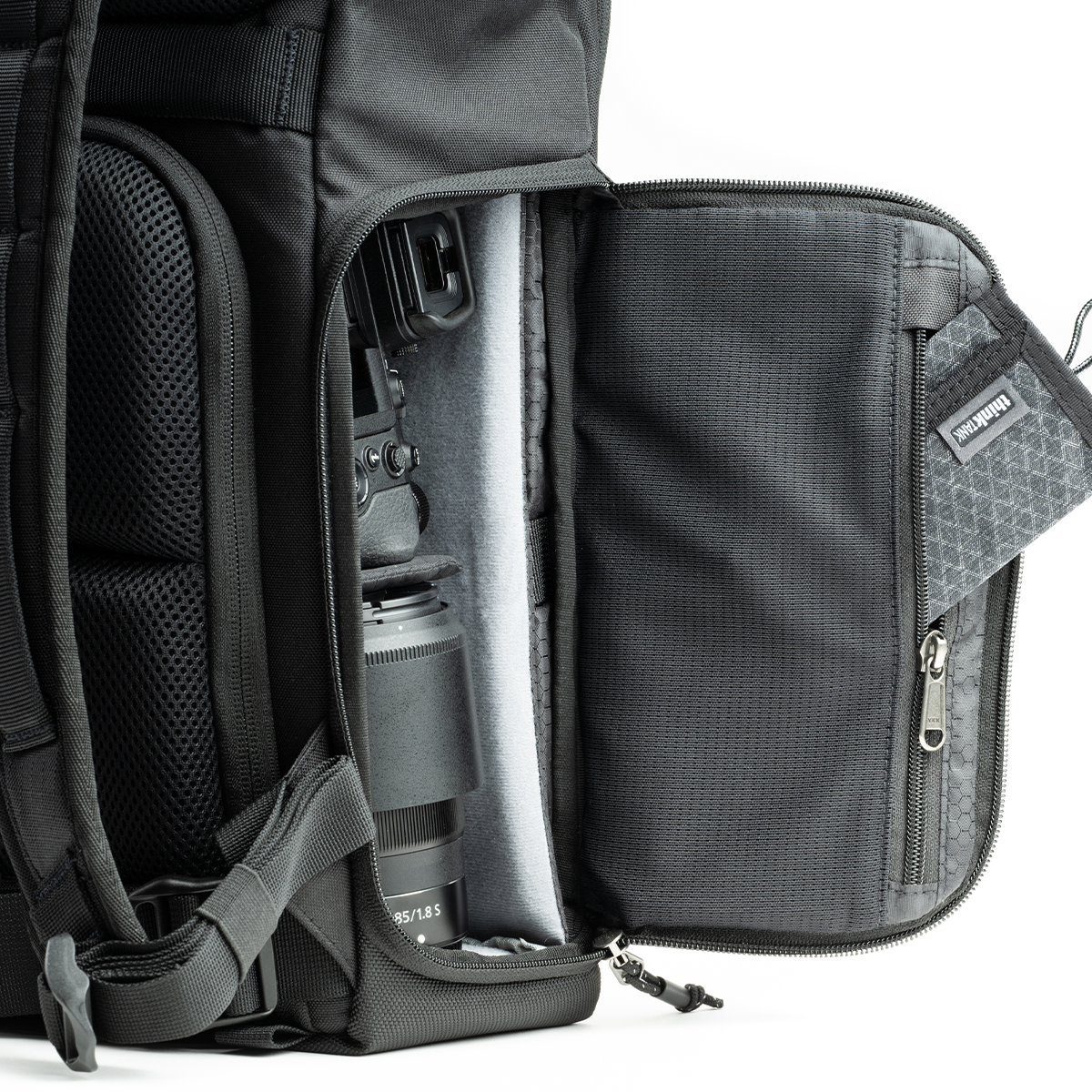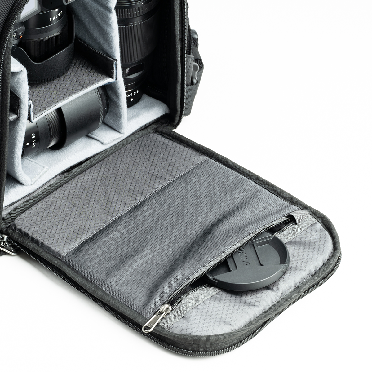 Der Rucksack bietet einen durchdachten Zugriff über die Seite und die Rückwand. So lässt sich die Kameraausrüstung in jeder Situation schnell und sicher entnehmen, ohne den gesamten Inhalt entpacken zu müssen.