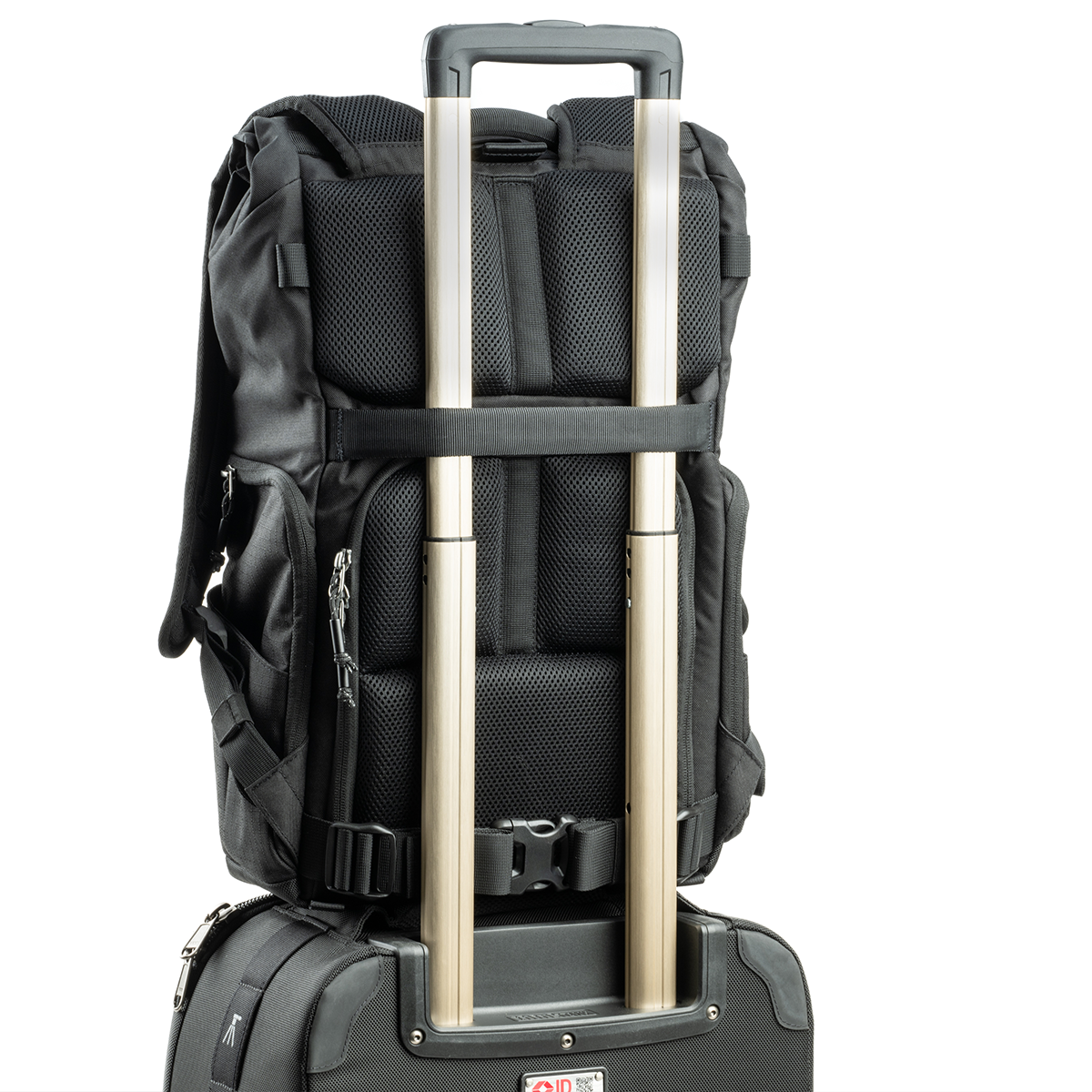 - Reisetauglich: Trolley-Durchlass, Stativhalterung mit Gurt, Regenschutzhülle und verstecktes AirTag/Tile-Fach.