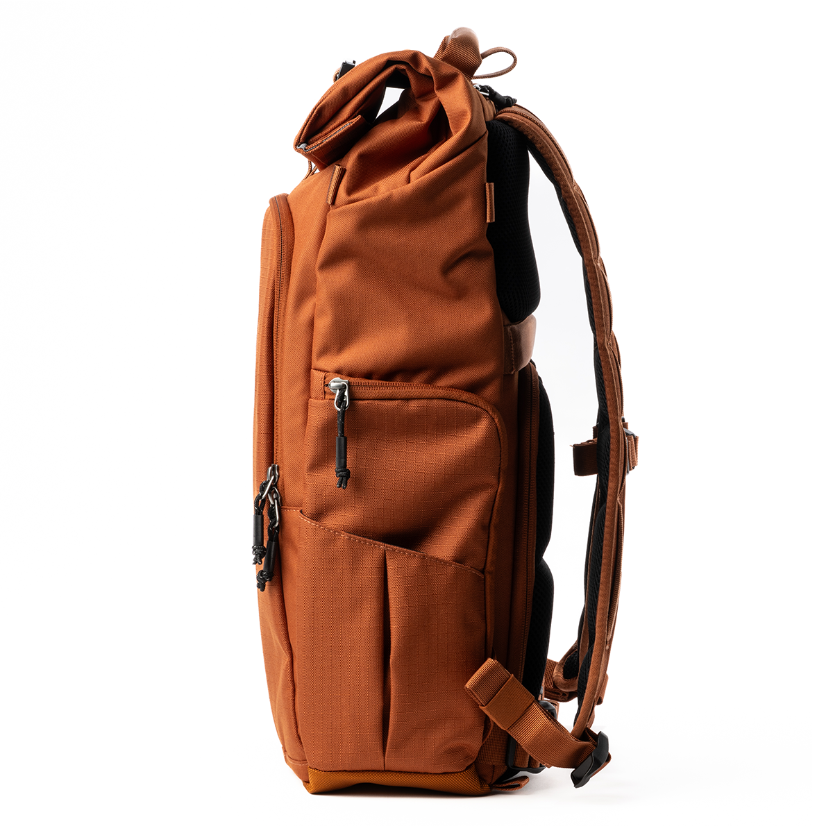 Der ThinkTank Focus Point Rolltop-Rucksack 30L Urban Rust bietet sowohl seitlichen als auch rückseitigen Zugang zur Kameraausrüstung. Diese Konstruktion ermöglicht es, Ausrüstung schnell und sicher zu entnehmen, ohne den gesamten Rucksack öffnen zu müssen.