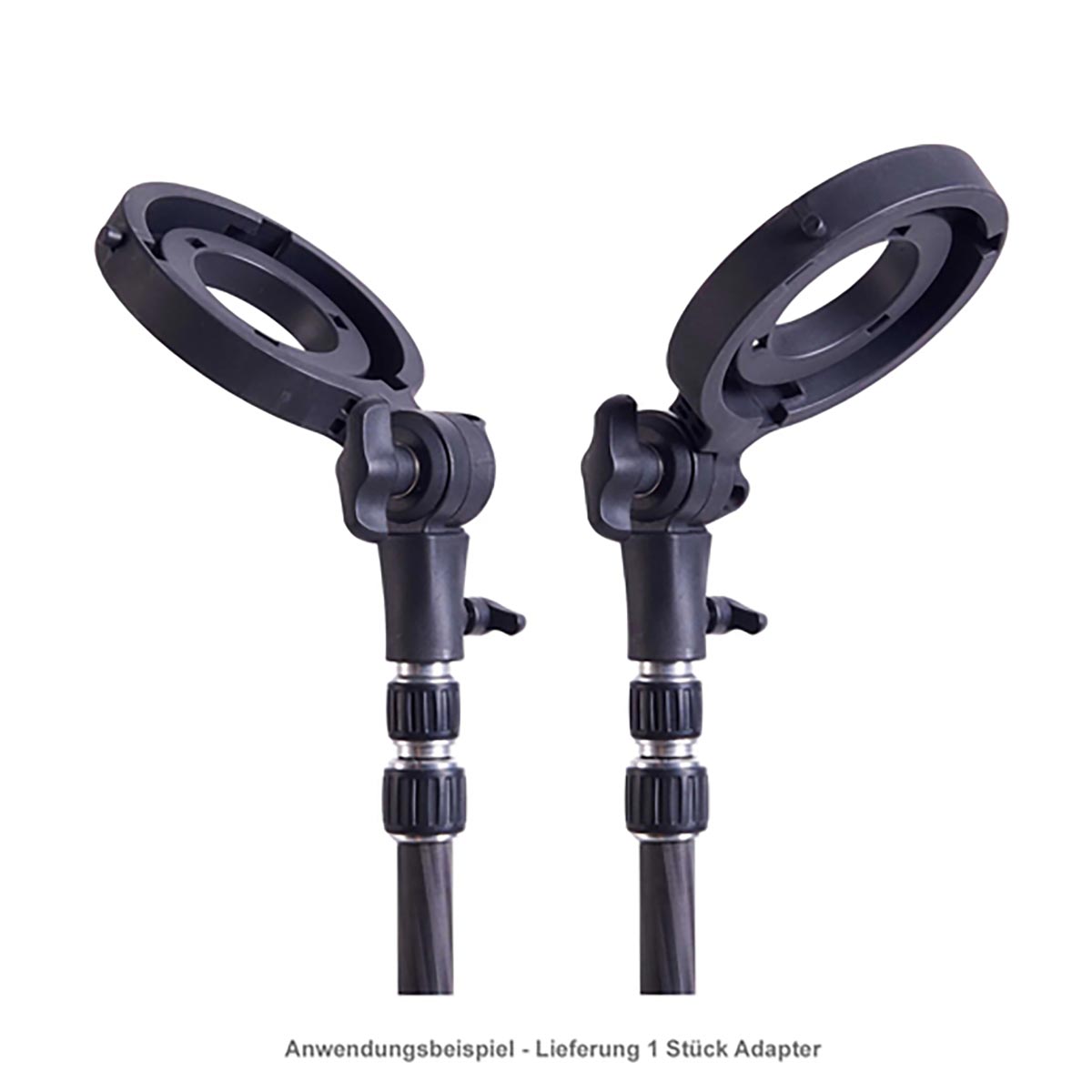 Über die integrierte Flügelschraube lässt sich der Neigungswinkel des Adapters präzise einstellen. So kann das Licht je nach Aufnahmesituation optimal ausgerichtet werden – ideal für Studio- und Produktfotografie.