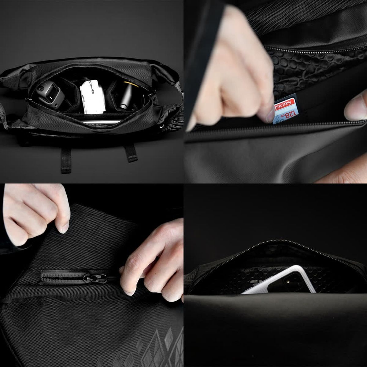Das Innenkonzept des VSGO Black Snipe Camera Sling Bag 4L ermöglicht eine strukturierte Aufbewahrung von Kamera, Zubehör und persönlichen Gegenständen. Das feste Hauptfach bietet sicheren Halt für eine spiegellose Kamera, während zusätzliche Fächer wie Kartenfach, Fronttasche und elastisches Smartphone-Fach eine klare Trennung der Inhalte gewährleisten.