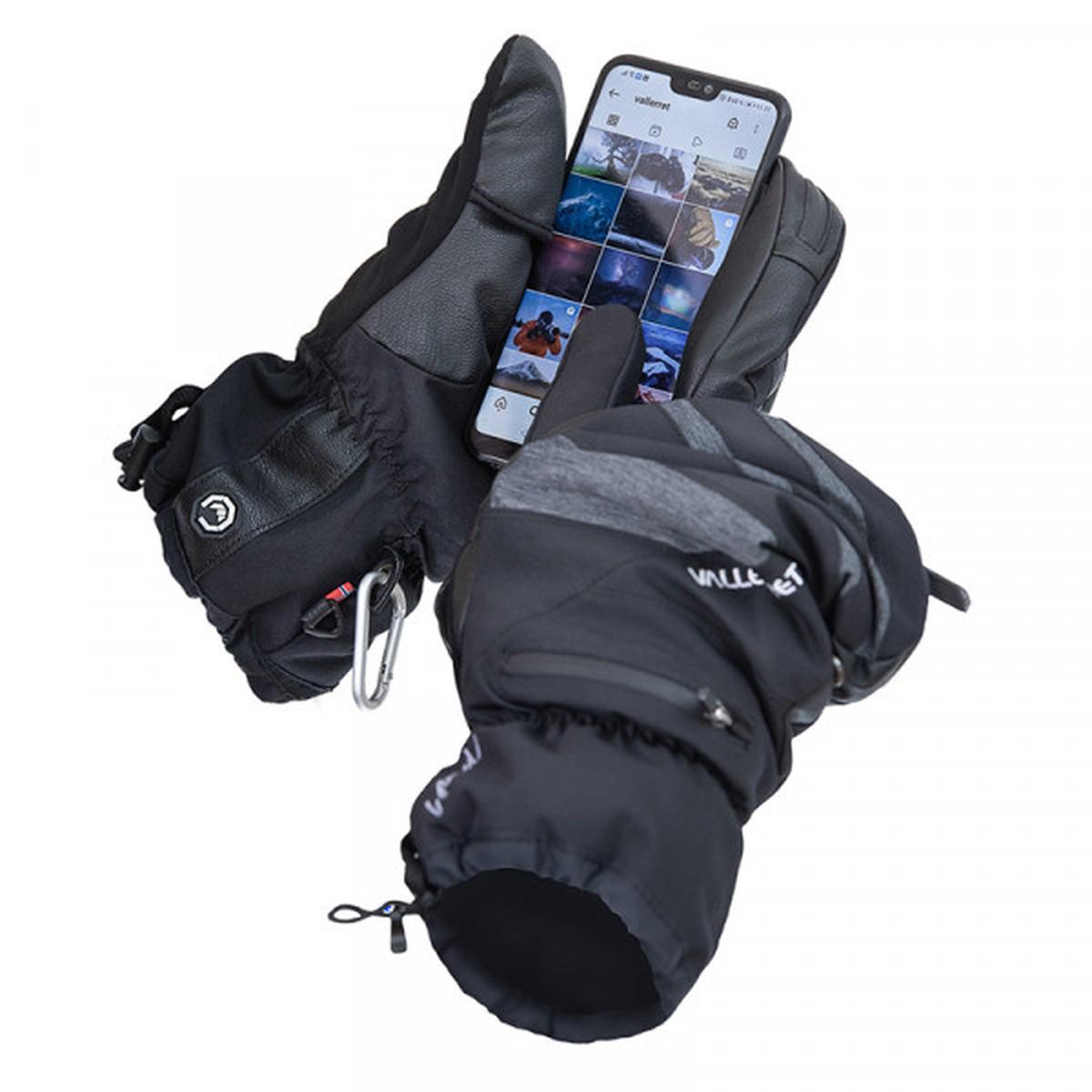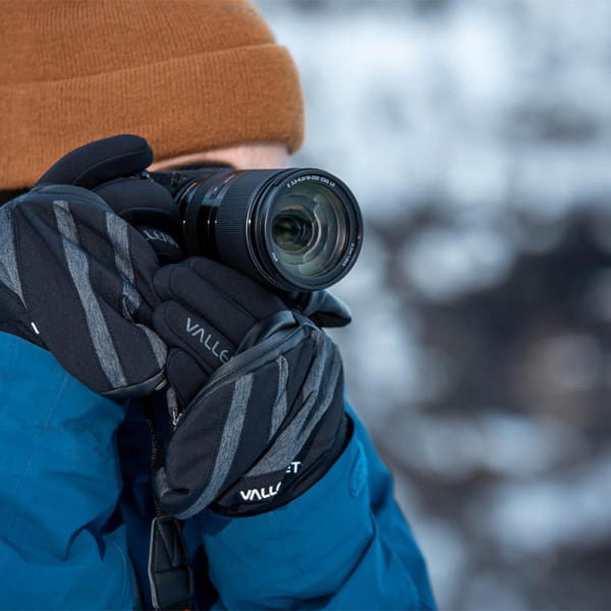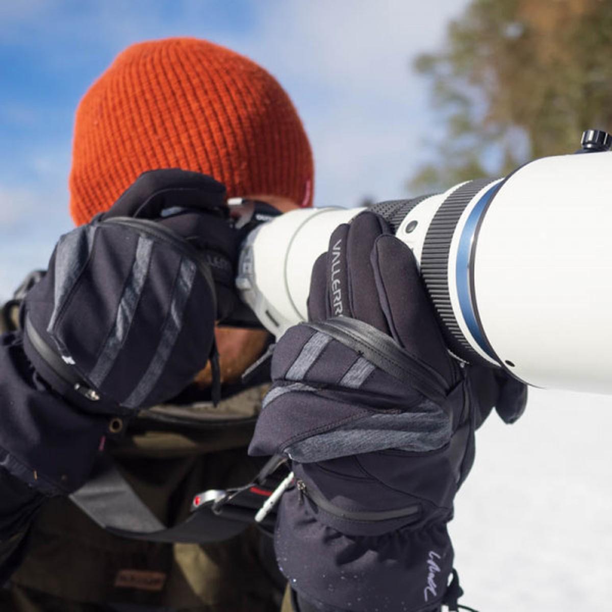 Der Vallerret Skadi LRS kombiniert einen isolierenden Innenhandschuh mit einem wetterfesten Fäustling. Dank des integrierten Reißverschlusses lassen sich die Finger des Innenhandschuhs schnell freilegen, um Kameraeinstellungen präzise vorzunehmen. Beide Handschuhe können separat oder gemeinsam getragen werden, was den Einsatz bei verschiedenen Temperaturbedingungen ermöglicht.