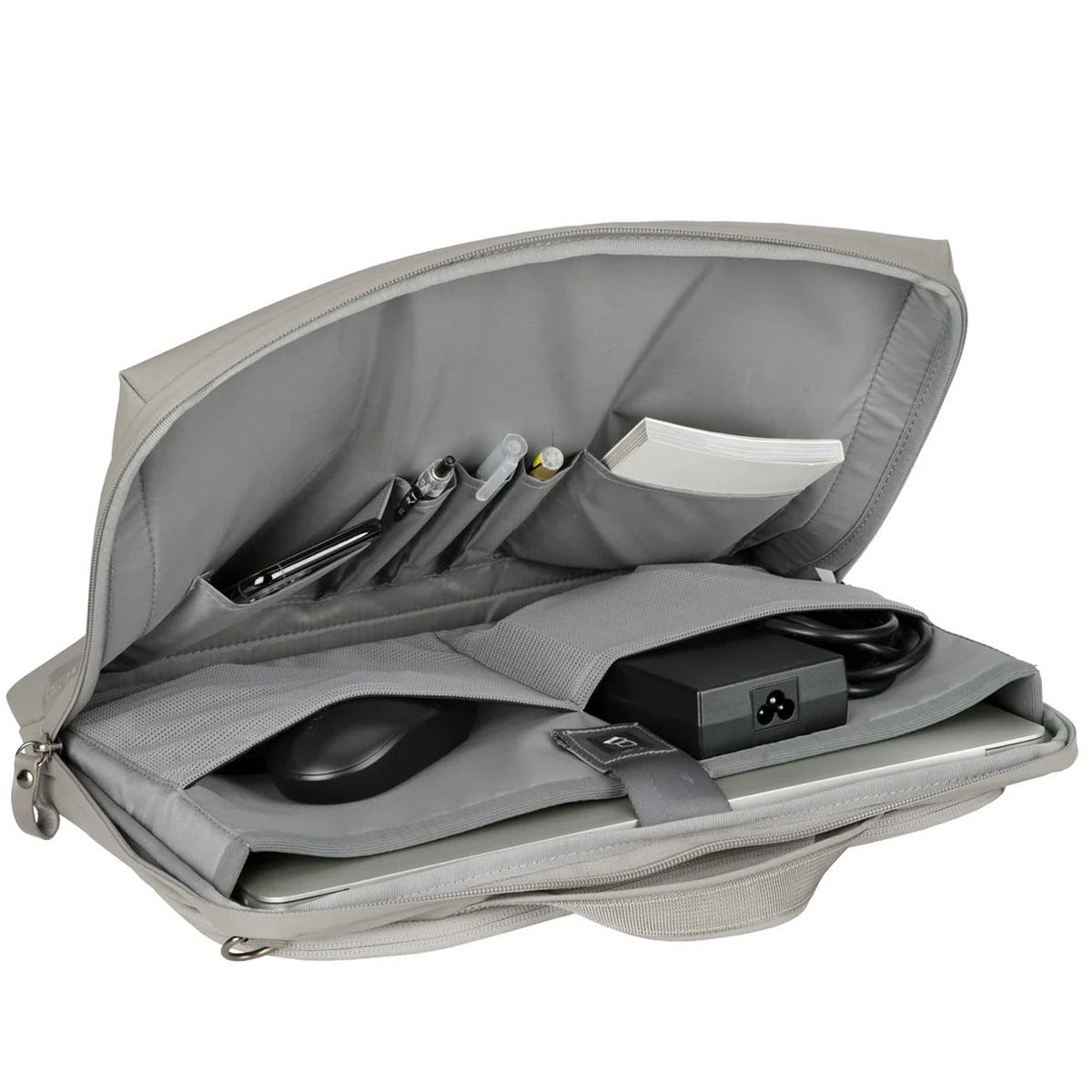 Zusätzliche Innenfächer ermöglichen die strukturierte Aufbewahrung von Ladegeräten, Mäusen und weiterem Zubehör. Dadurch bleibt das Equipment übersichtlich organisiert und jederzeit schnell griffbereit, was insbesondere bei mobilen Einsätzen von Vorteil ist.