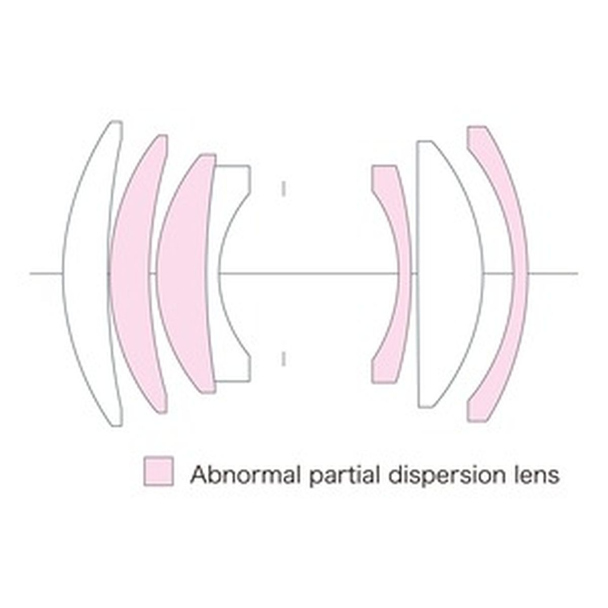 | Linsenkonstruktion | 7 Elemente in 6 Gruppen |