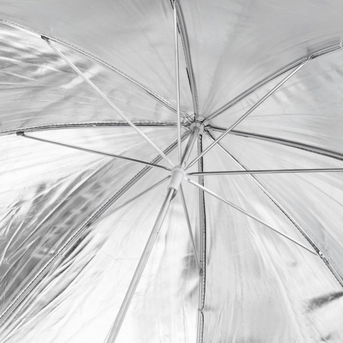 Mit diesem auf der Innenseite silbern beschichteten Reflexschirm erhalten Sie eine klare Ausleuchtung mit starken Kontrasten und brillanten Farben. Er eignet sich besonders für die Produktfotografie oder zum betonen von Stimmungen in der Portraitfotografie. Die flexiblen Einsatz- und Verstaumöglichkeiten machen ihn zum optimalen Begleiter “on location“. Der Reflexschirm wird einfach in der Schirmhalterung Ihres Studioblitzes befestigt.