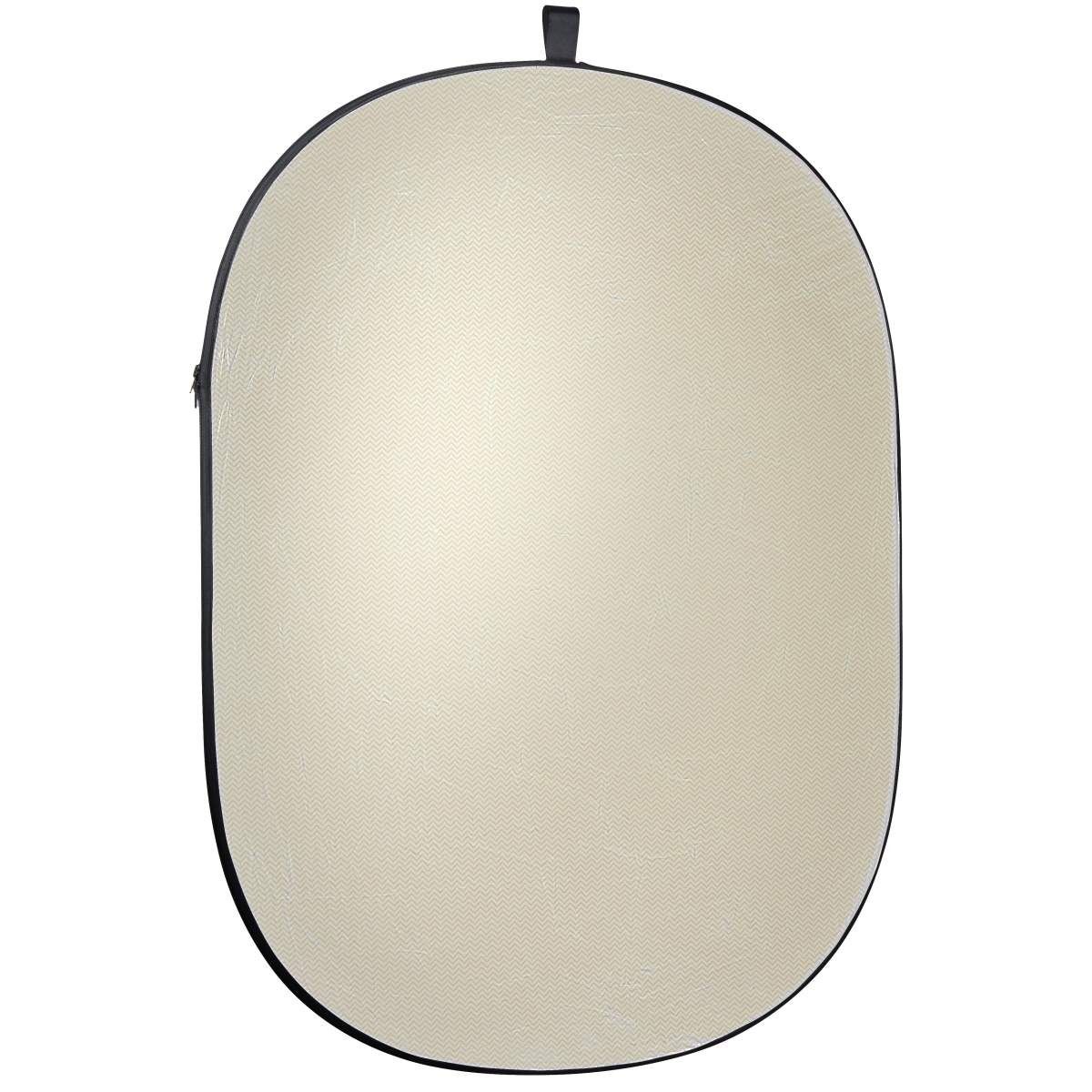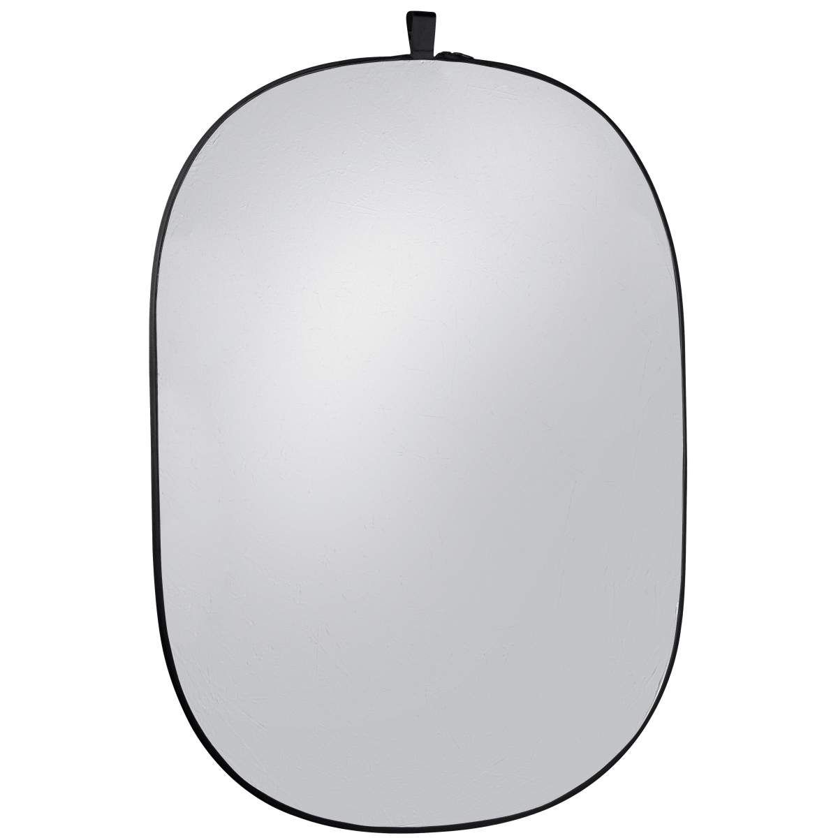 Der Reflektorbezug mit wavy goldfarbener Beschichtung eignet sich sehr gut als Haupt- oder Effektlicht in der Porträtfotografie. Er sorgt für eine wärmere Lichtcharakteristik. Der silberne Bezug hingegen reflektiert das einfallende Licht sehr hart und kühl. Aus diesem Grund findet er vor allem in der Produktfotografie als Haupt- und Effektlicht seine Anwendung. Aber auch als Effektlicht zur Aufhellung schätzen ihn Fotografen. Eine weiche und farbneutrale Aufhellung lässt sich sehr gut mit dem weiß beschichteten Reflektor umsetzen. Die Lichtcharakteristik ist sehr homogen und gleichmäßig. Um einzelne Partien zum Beispiel in der Porträtfotografie abzudunkeln, eignet sich der schwarze Bezug. Gerade in der Porträtfotografie findet er bei der gezielten Lichtführung seine Anwendung. Die Diffusorbespannung des eigentlichen Reflektors kennen die meisten Fotografen aus der Porträtfotografie on Location, um zum Beispiel das Sonnenlicht weicher zu gestalten und somit eine sehr weiche und fast schon indirekte Beleuchtung zu erhalten. Als Hintergrund wird er gern von hinten durchleuchtet und sorgt somit für einen sehr strahlenden Hintergrund. So lassen sich auch High-Key-Aufnahmen professionell umsetzen.Ovale Form