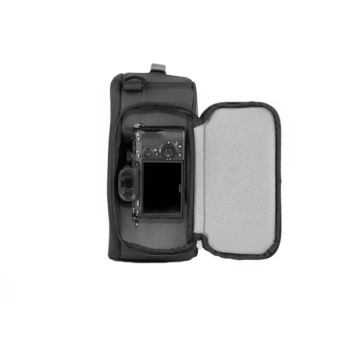 - Weiches graues Innenmaterial: Verbessert die Sichtbarkeit von Kamera und Zubehör im Inneren.