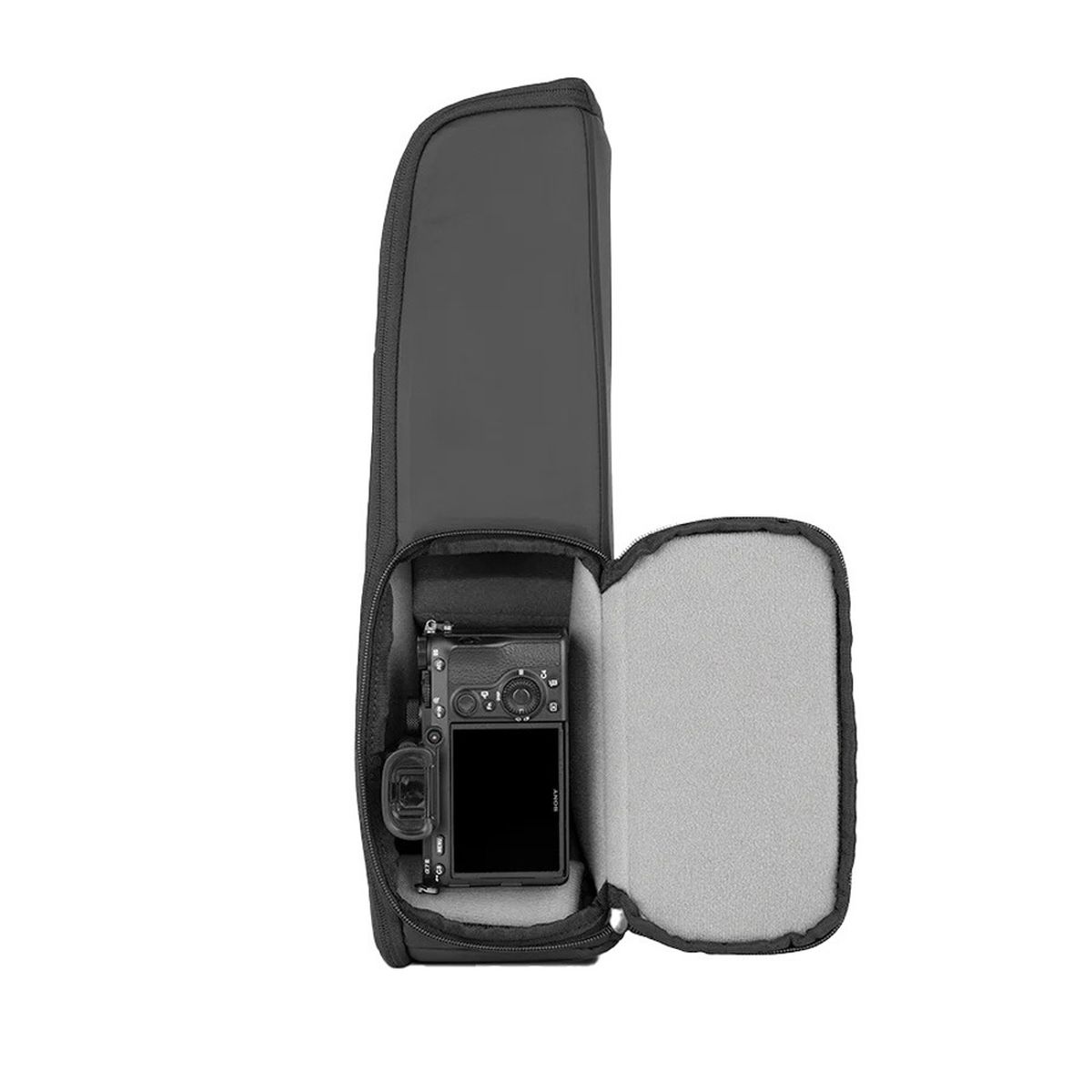 - Schneller Zugriff: Seitlicher Reißverschlusszugang und flexibler Rolltop-Verschluss für rasches Entnehmen der Kamera.