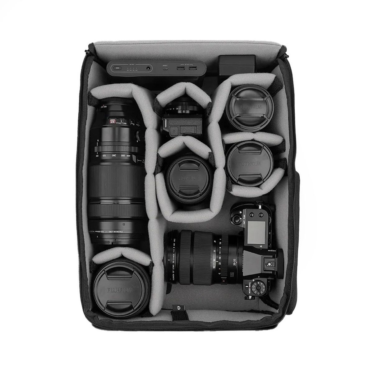 Das neu entwickelte modulare Trennsystem des Wandrd Pro Deep Camera Cube v2 erlaubt eine effiziente und sichere Organisation unterschiedlichster Ausrüstung. Lange und kurze Divider lassen sich flexibel positionieren, sodass kein ungenutzter Raum entsteht und empfindliche Komponenten optimal fixiert sind.