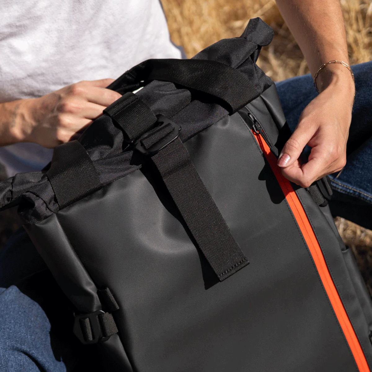- Rolltop mit Reißverschlusszugang: Erweiterbarer Stauraum und zusätzlicher Zugriff von oben.