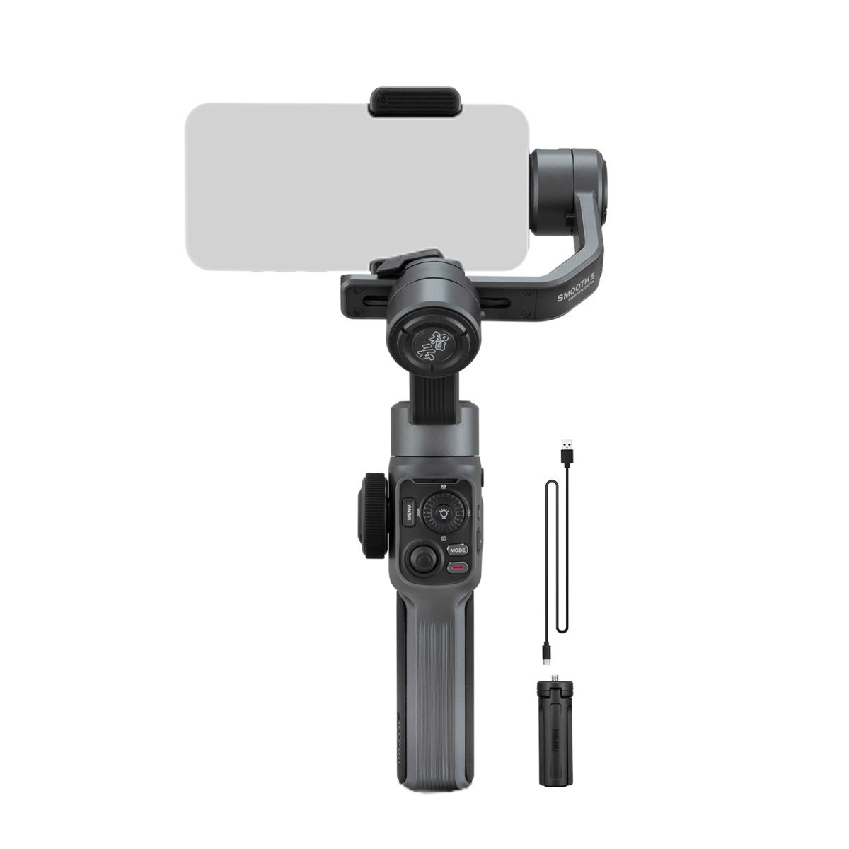 Der Smooth 5 bietet Filmemachern, die Inhalte mit Ihrem Smartphone erstellen, die Möglichkeit, noch professioneller zu arbeiten und sich so kreativ wie nie zuvor zu entfalten. Der Smooth 5 ist sowohl mit den Betriebssystemen von Android als auch von iOS kompatibel und verfügt über neue, revolutionäre Funktionen, mit denen sich auf dem Mobilgerät eines jeden Filmemachers Aufnahmen in Hollywood-Qualität erzielen lassen.